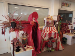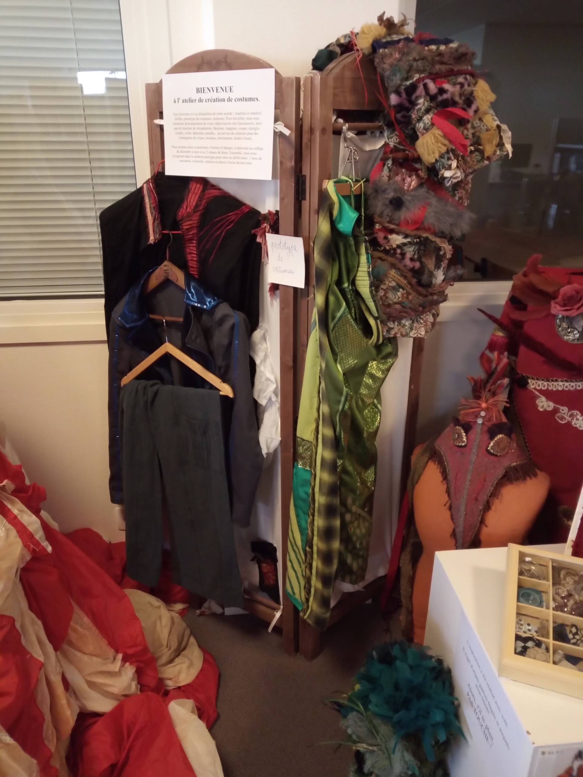 Noémie et Margot, deux costumières, sont venues vendredi 8 décembre 2021 présenter quelques unes de leurs créations aux classes de 4èB et G. Dans le cadre d’une résidence d’artistes, les deux jeunes femmes vont accompagner les élèves afin de créer leurs propres costumes, en vue d’un défilé. Après s’être présentées, elles ont parlé de leur travail et de leurs œuvres, composées en grande partie de matériaux de récupération. Puis elles ont déroulé le calendrier du projet, avant d’accompagner les élèves en salle d’arts plastiques pour une première séance. L’exposition des costumes se tiendra au CDI jusqu’au 14 janvier.